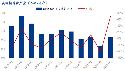 經歷過上半年的檢修和維護后,預計下半年加拿大的精煉工廠產量將有所回升;英國精煉鎳生產預計持穩(wěn)。